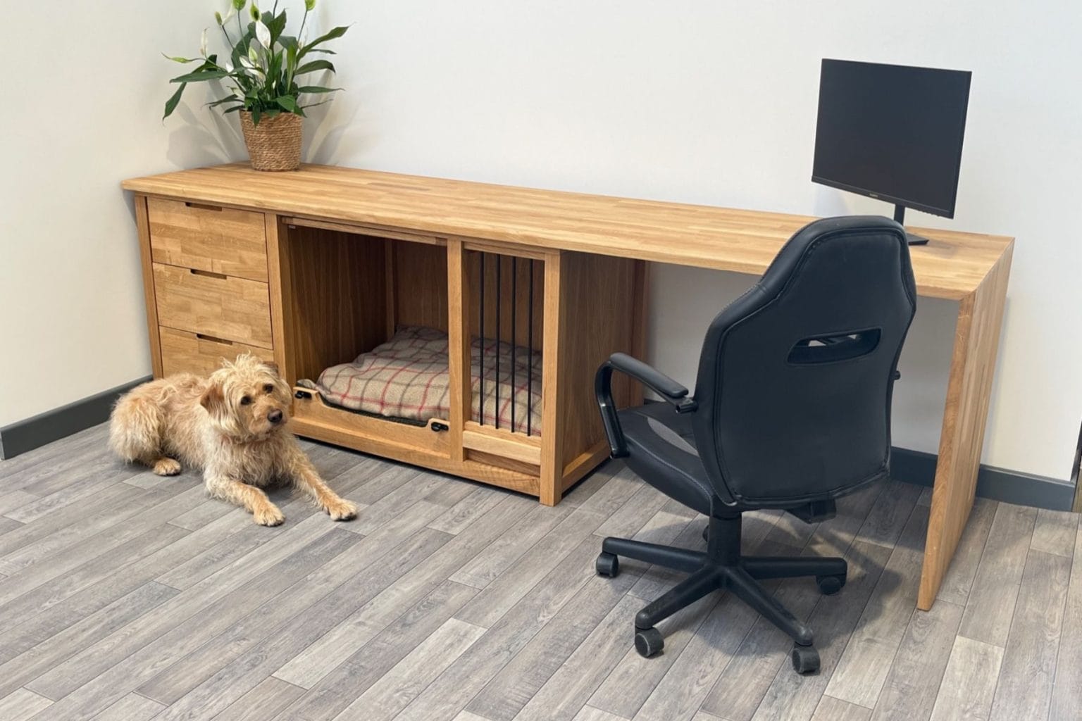 If you have two dogs and a limited space, they have also crafted this L-shaped desk and kennel.